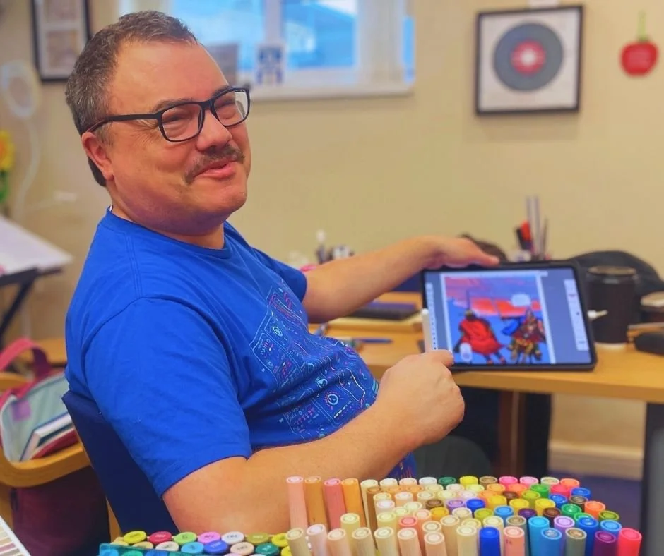 Using a Basic Technical Pen tool within the Sketchbook app on his iPad, Stuart captures this dynamic style with an Apple Pencil, a digital approach that allows him to maintain the energetic lines he loves.